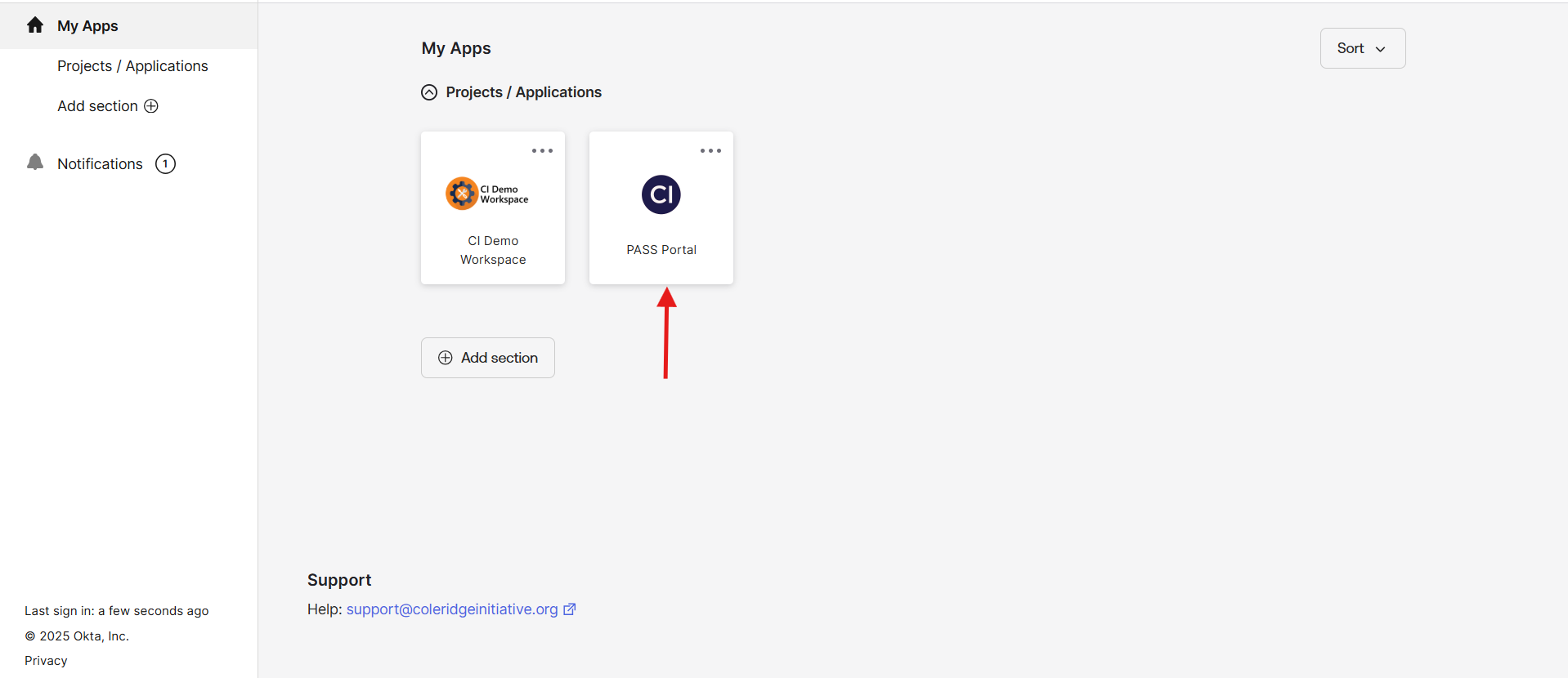 Log into the Okta ADRF portal and navigate to the Pass Portal in the Okta ADRF Portal as shown below: